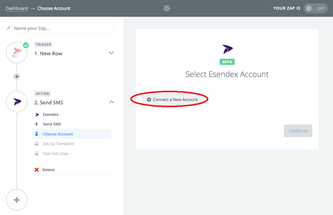 For the next step, you will then need to connect your Esendex account. Simply click “Connect a New Account”